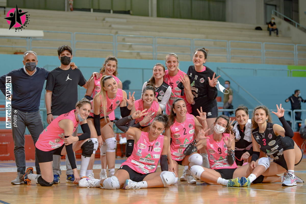 Star Volley Bisceglie: Gagliardi 5, Gabriele 7, Romano 9, Bausero 17, Haliti 8, Lionetti 2, Todisco (libero), Altamura 4, Volpe 2, De Nicolo (libero). N.e.: Masino, Dileo. Allenatore: Maggialetti. Aces 11, muri 5, errori 14.