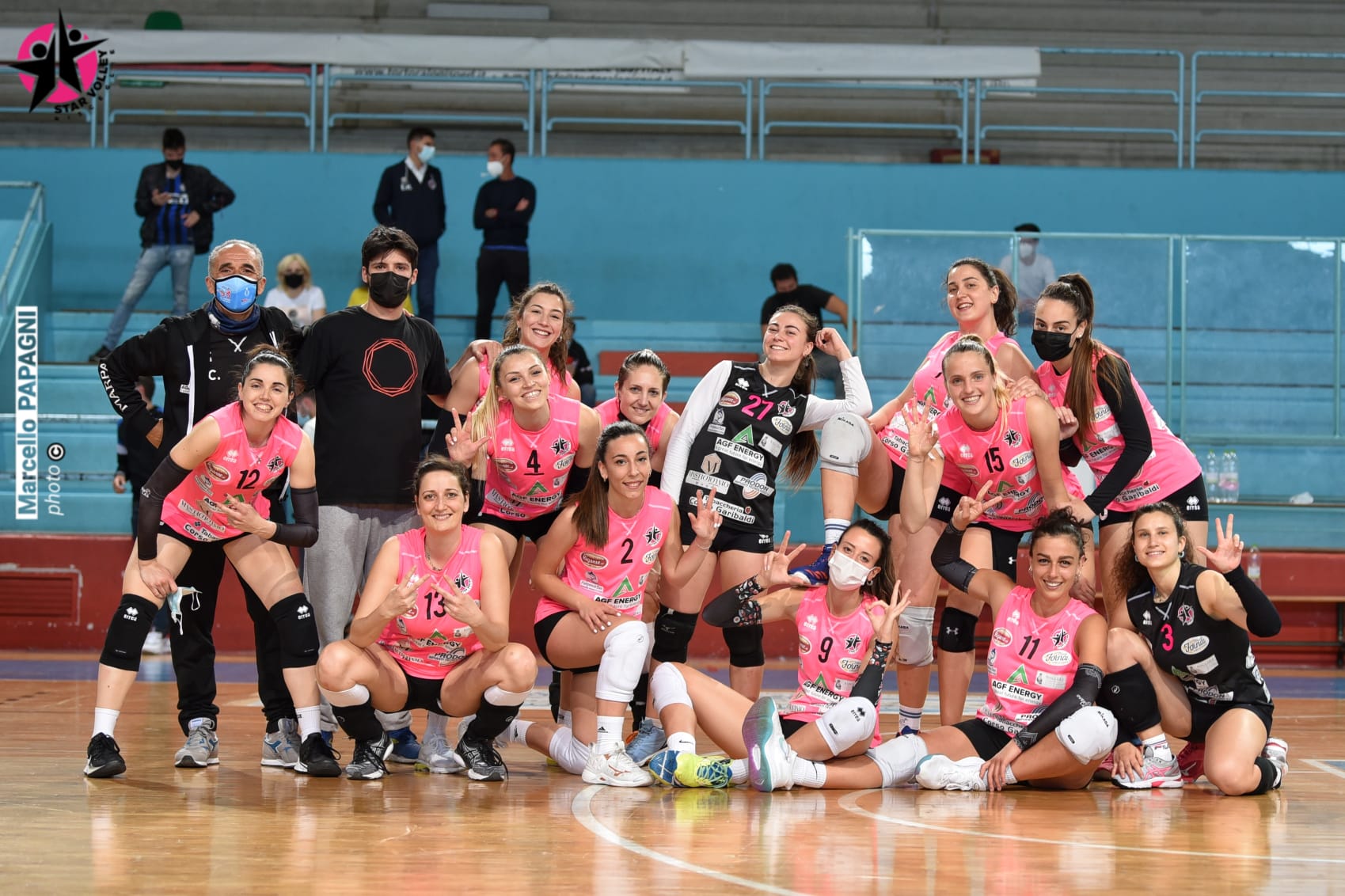 Nerofucsia implacabili nel terzo periodo: 10-3 per mettere le cose in chiaro e un crescendo, fino al 19-9, cui hanno contribuito anche Ilaria De Nicolo e Alessia Dileo (all’esordio). Pratica archiviata sul 25-14 e nuova affermazione in cassaforte. La rincorsa al vertice non conosce sosta né ostacoli: giovedì 25 maggio, salvo diverse comunicazioni, la Star Volley sarà impegnata sul rettangolo del PalaLosito per la sfida con la Polis Corato.
