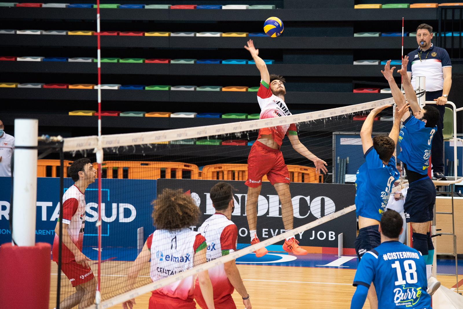 Si rivela ostico l’Arrè Formaggi Turi, compagine capace di difendere molto bene e che ha giocato in tutti quattro i set una buona pallavolo. La differenza l’ha fatta la prova in attacco dei padroni di casa che riescono a superare l’ostacolo pur essendo privi di capitan Del Vecchio. Tutti ispirati da un Bernardi in grande spolvero, gli attaccanti biancorossi finiscono tutti in doppia cifra: Fiorillo, best scorer del match, con 25 punti, Lorusso, autore di 21 punti, e Ciccia, con una percentuale positiva in attacco del 59%.