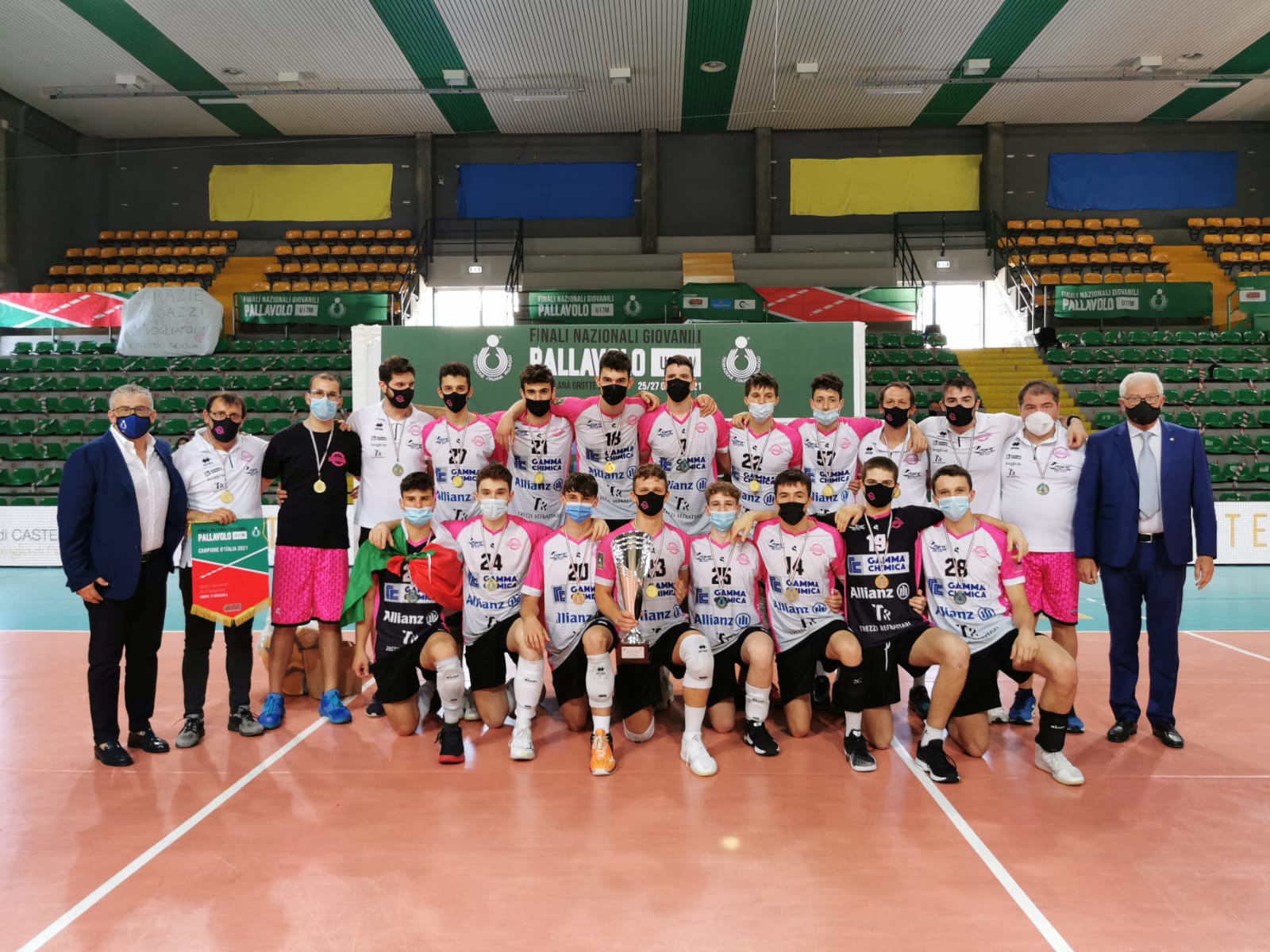 1 scudetto, 12 squadre, 12 ufficiali di gara, 24 gare, tutte trasmesse in diretta streaming, 3 campi da gioco, 168 atleti, questi alcuni numeri delle emozionanti Finali Giovanili CRAI U17M, andate in scena da venerdì ad oggi a Castellana Grotte. A cucirsi lo scudetto sul petto è sono stati i Diavoli Rosa di Brugherio, al loro secondo tricolore in due anni, dopo la bellissima finale vinta per 3-0 sulla Colombo Genova di Luca Porro, miglior attaccante, entrambe squadre giunte all’ultimo gradino della scalata verso lo scudetto dopo un cammino che le ha viste vincere i rispettivi gironi e successivamente le semifinali con Vero Volley Banco BPM e Volley Treviso. E’ stata una finale a senso unico, con Genova che ha provato a tener testa agli avversari soprattutto nella prima parte di terzo set trascinata da Porro, ma i colpi di Barotto (MVP della manifestazione) e le difese di Colombo (miglior libero), hanno fatto la differenza insieme ad un gruppo compatto come quello dei Diavoli Rosa che ha mostrato sin dalla prima giornata di voler dire la sua in queste finali.