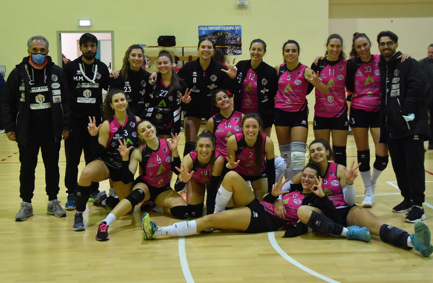 Un altro mattoncino sulla costruzione. Il 3-0 inflitto all’Asem Bari ha permesso alla Star Volley Bisceglie di collezionare la quarta affermazione consecutiva nel girone A di Serie C. Le nerofucsia, pur non brillando, si sono imposte piuttosto agevolmente e in modo molto più netto di quanto possa trasparire dalla lettura dei parziali: troppi errori gratuiti (ben 28) hanno influito sull’economia del match, controllato comunque senza particolari affanni dalla truppa di Michelangelo Maggialetti. Un commosso e doveroso ricordo di Federica De Luca e del piccolo Andrea ha preceduto l’inizio della sfida.