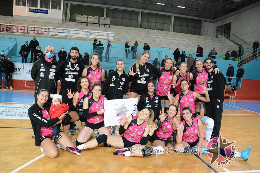 Star Volley Bisceglie: Dominko 6, Haliti 12, Ragone 14, Gabriele 1, Binetti 13, Di Leo 5, Todisco (libero), Bisceglia, Ranieri, Altamura, D’Ambrosio, Bernardi, Padula, De Nicolo (libero). All.: Maggialetti.