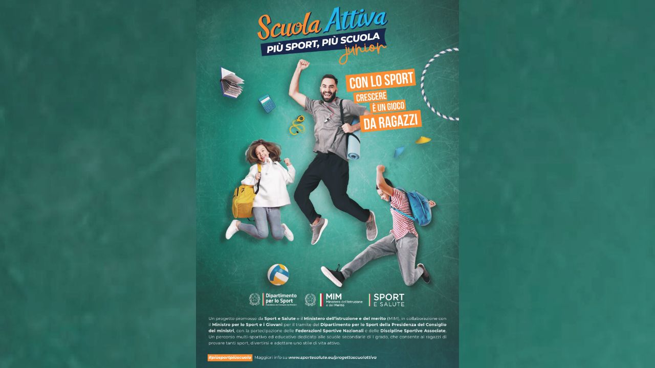 Scuola Attiva è promosso da Sport e Salute e il Ministero dell’istruzione e del merito (MIM), in collaborazione con il Ministro per lo Sport e i Giovani per il tramite del Dipartimento per lo Sport della Presidenza del Consiglio dei ministri.