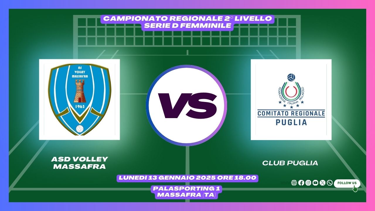 13/01 ore 18.00 A.s.d. Volley Massafra (Palasporting 1, Massafra)