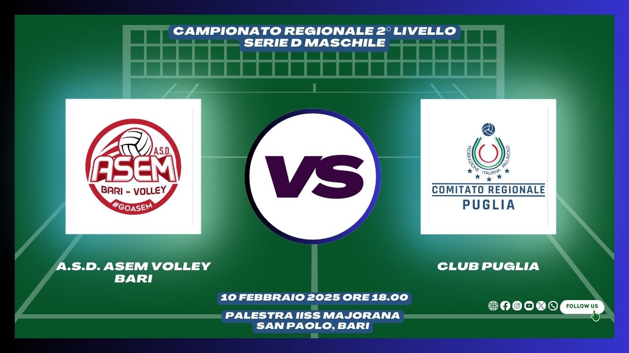 Next article10-02-2025: #fipavpuglia – Club Puglia maschile, sconfitta sul campo dell’Asem Bari