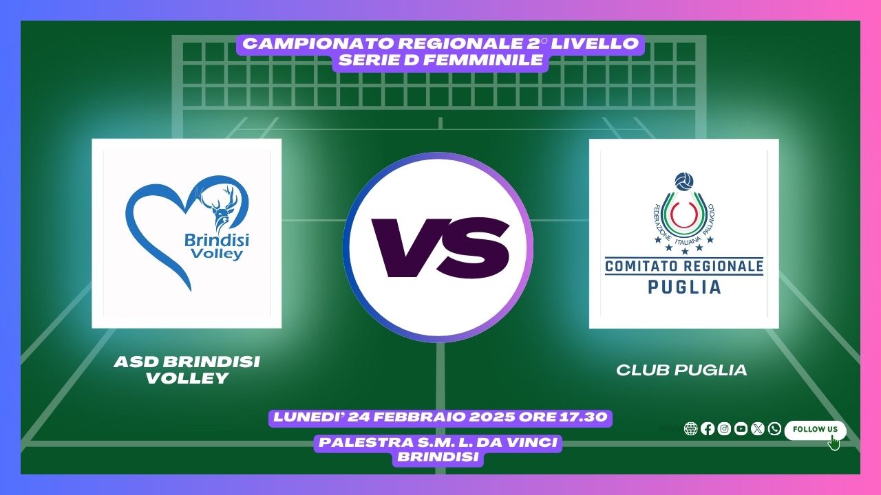 24/02 ore 17.30 Asd Brindisi Volley (Palestra S.m. L. Da Vinci, Brindisi)