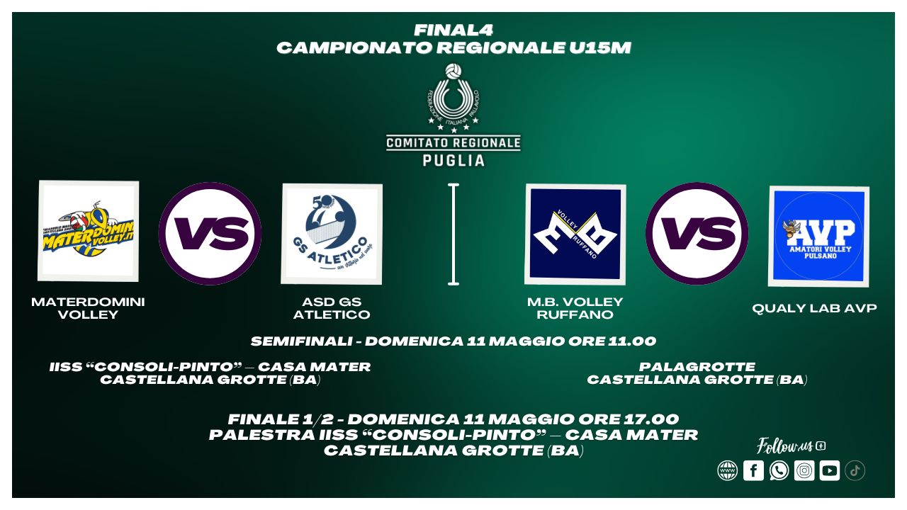 Si disputeranno domenica 11 maggio 2025 a Castellana Grotte le Final Four della Fase Regionale Under 15 Maschile, evento decisivo per decretare le due squadre che rappresenteranno la Puglia alle BigMat Finali Nazionali Giovanili, in programma a Fondi-Gaeta (LT) dal 28 maggio al 2 giugno 2025.