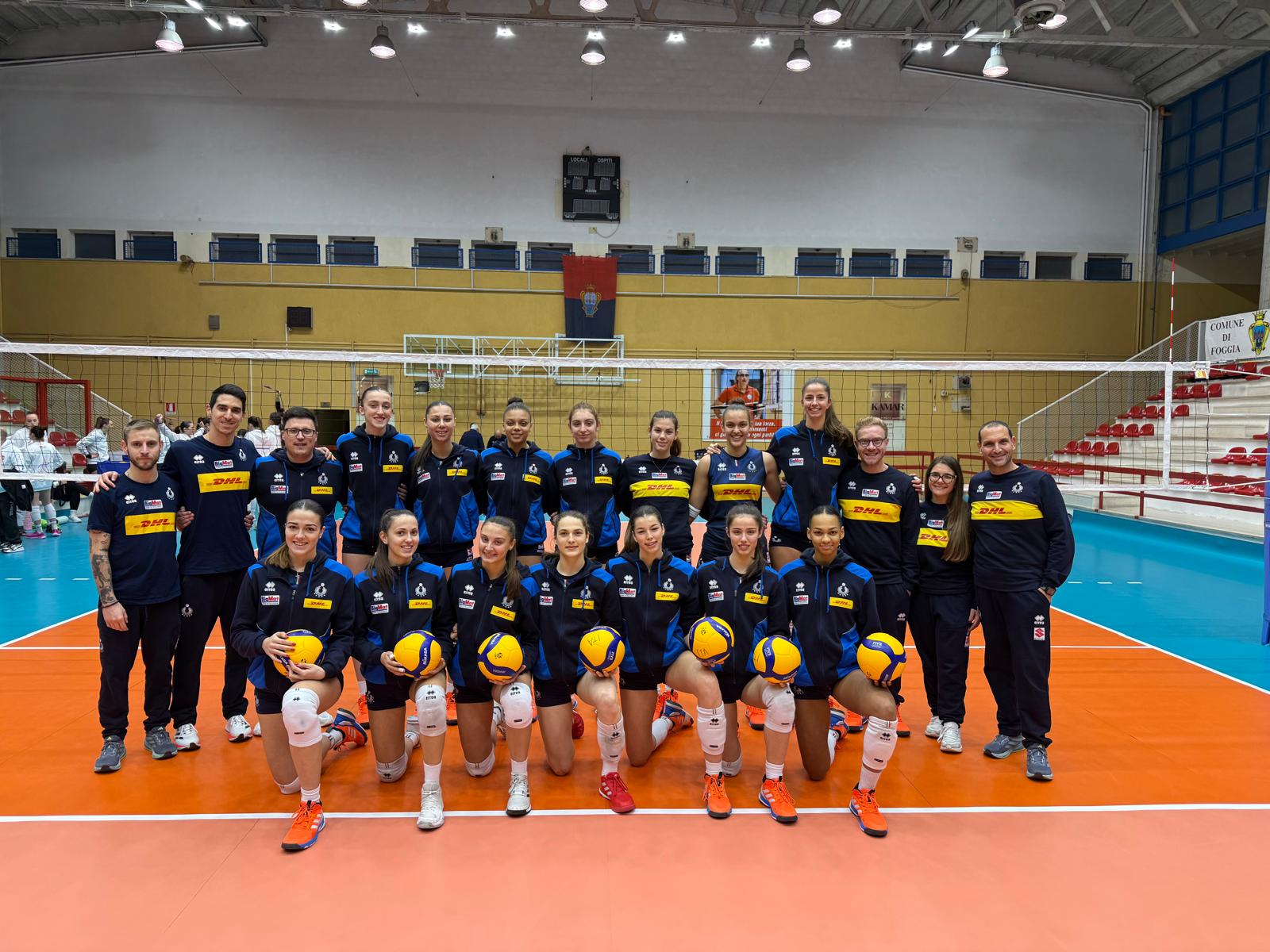 Le ragazze di Stefano Gregoris, nell’impianto che ospiterà dal 6 al 10 gennaio il Torneo WEVZA di qualificazione ai Campionati Europei di categoria 2026, si sono imposte sulle pugliesi con il punteggio di 3-0 (25-21, 25-22, 25-21). Best scorer dell’incontro tra le azzurrine sono state Lisa Monari Gamba e Giulia Gordon, entrambe con 14 punti a referto, seguite, sempre in doppia cifra da Anita Tessariol con 12.